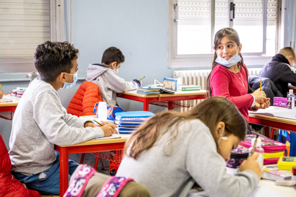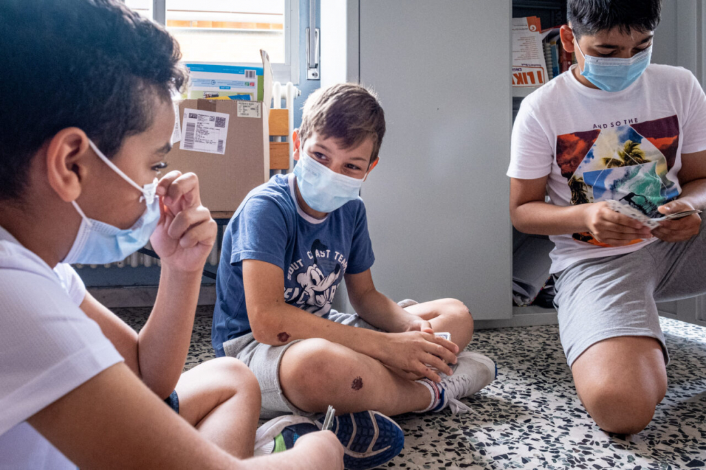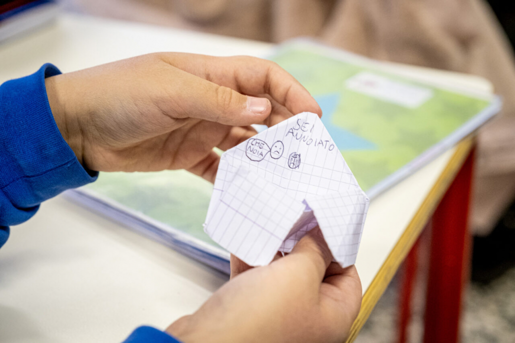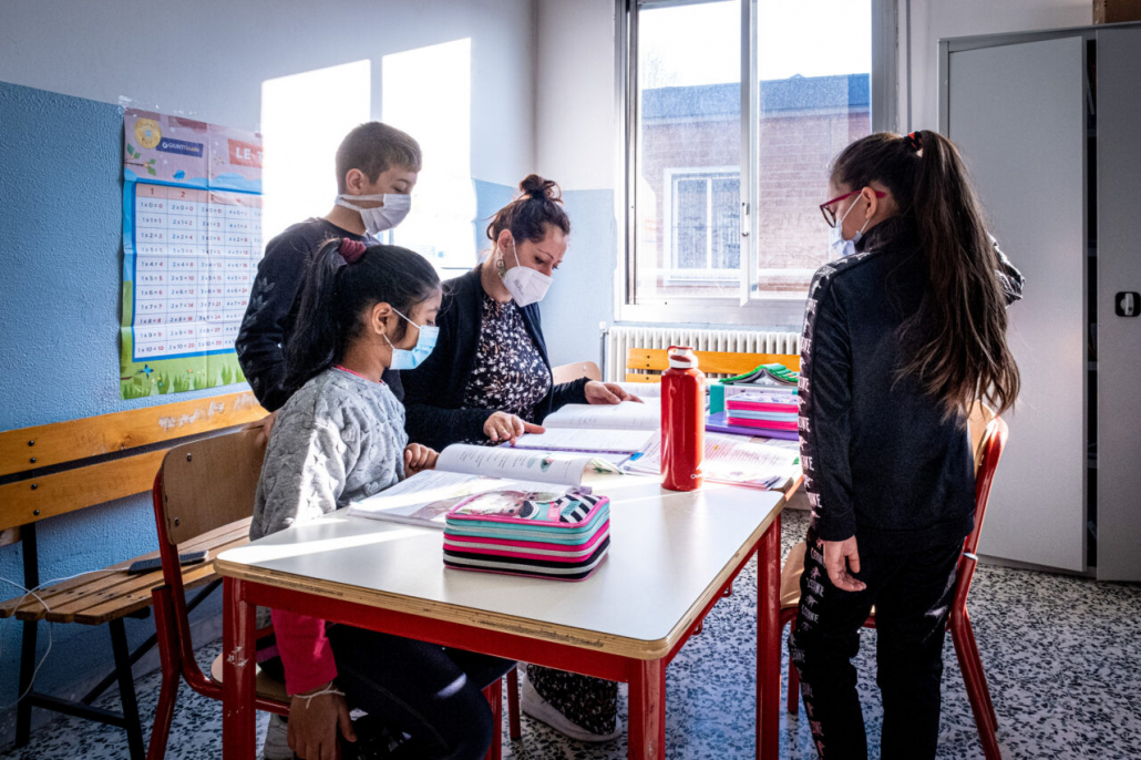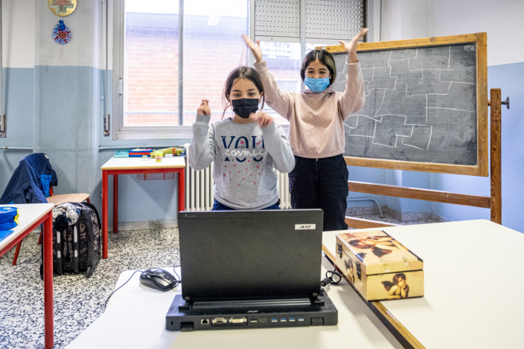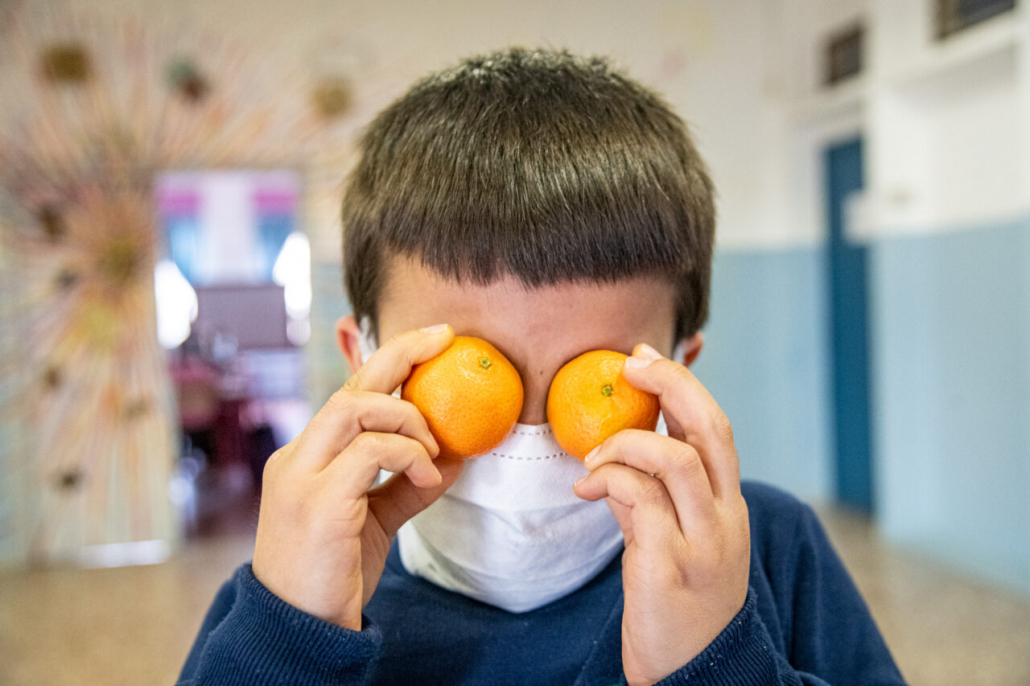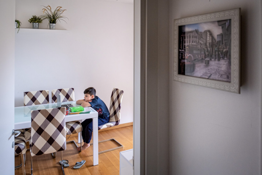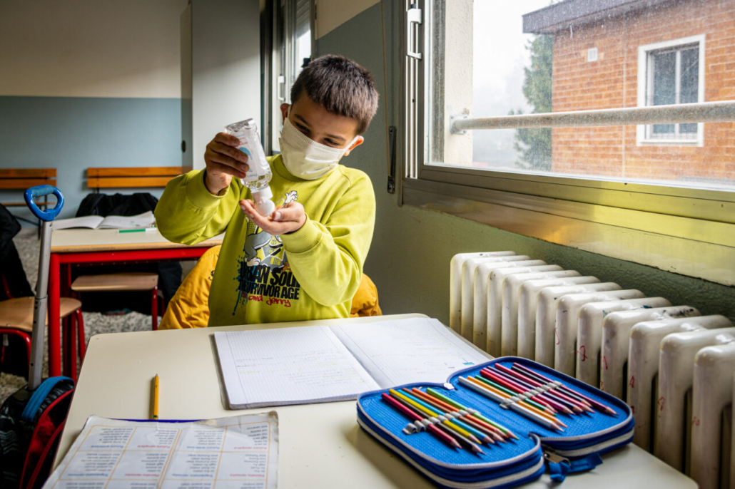 Ho cercato la risposta a questa domanda tra i banchi di una quarta elementare della periferia Milanese. I bambini della IV A dell’Istituto Trilussa, insieme alle loro maestre, mi hanno accolto da subito e per l’intero anno scolastico 2020/21 mi hanno lasciato girovagare tra i banchi, raccontandomi la novità del giorno, i nuovi disegni fatti, le conquiste ai videogiochi, la paura di rimanere contagiati e far stare a casa anche mamma e papà. Quando anche la scuola primaria ha chiuso, in piena zona rossa, mi hanno aperto le loro case durante le lezioni a distanza e lasciato partecipare ai laboratori online. Nella quotidianità scolastica ho cercato quello che di normale c’è in una situazione anormale, quello che di ordinario è rimasto fra i banchi di scuola, tra i flaconi di disinfettante e gli ingressi contingentati, quali espressioni si sono nascoste dietro le mascherine. I bambini sono bambini sempre, curiosi del mondo e pronti a scriverne il senso passo passo, giorno dopo giorno.